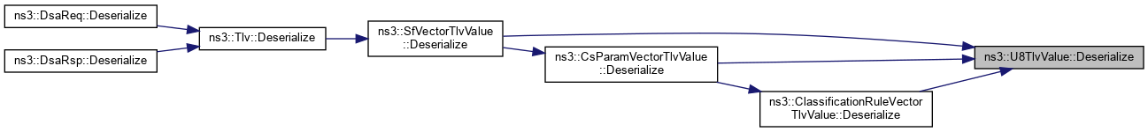 Here is the call graph for this function:| uint32_t ns3::U8TlvValue::Deserialize | ( | Buffer::Iterator | start | ) |