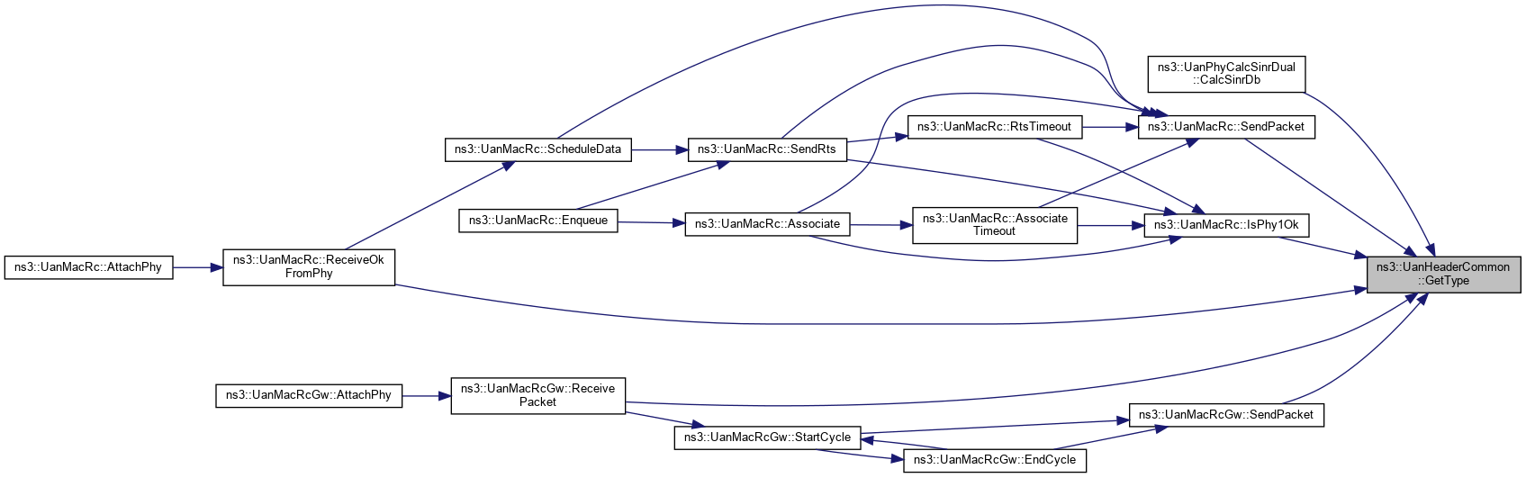 Here is the caller graph for this function:| uint8_t ns3::UanHeaderCommon::GetType | ( | void | ) | const |