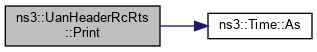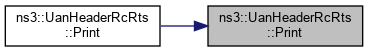 Here is the call graph for this function:| void ns3::UanHeaderRcRts::Print | ( | std::ostream & | os, |