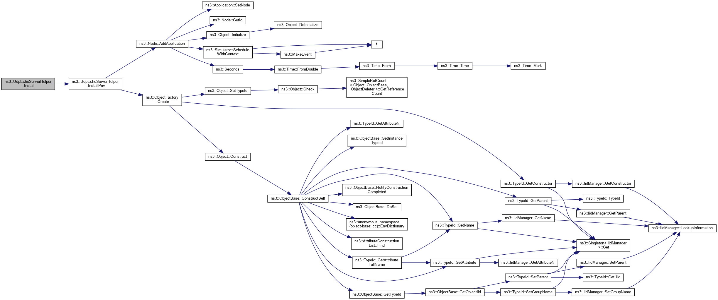 Here is the call graph for this function:| ApplicationContainer ns3::UdpEchoServerHelper::Install | ( | NodeContainer | c | ) | const |