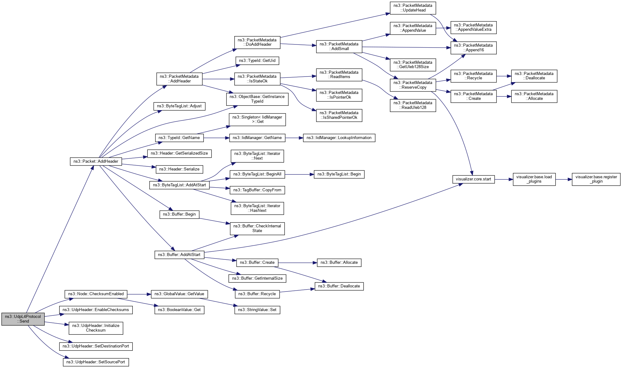 Here is the call graph for this function:| void ns3::UdpL4Protocol::Send | ( | Ptr< Packet > | packet, |