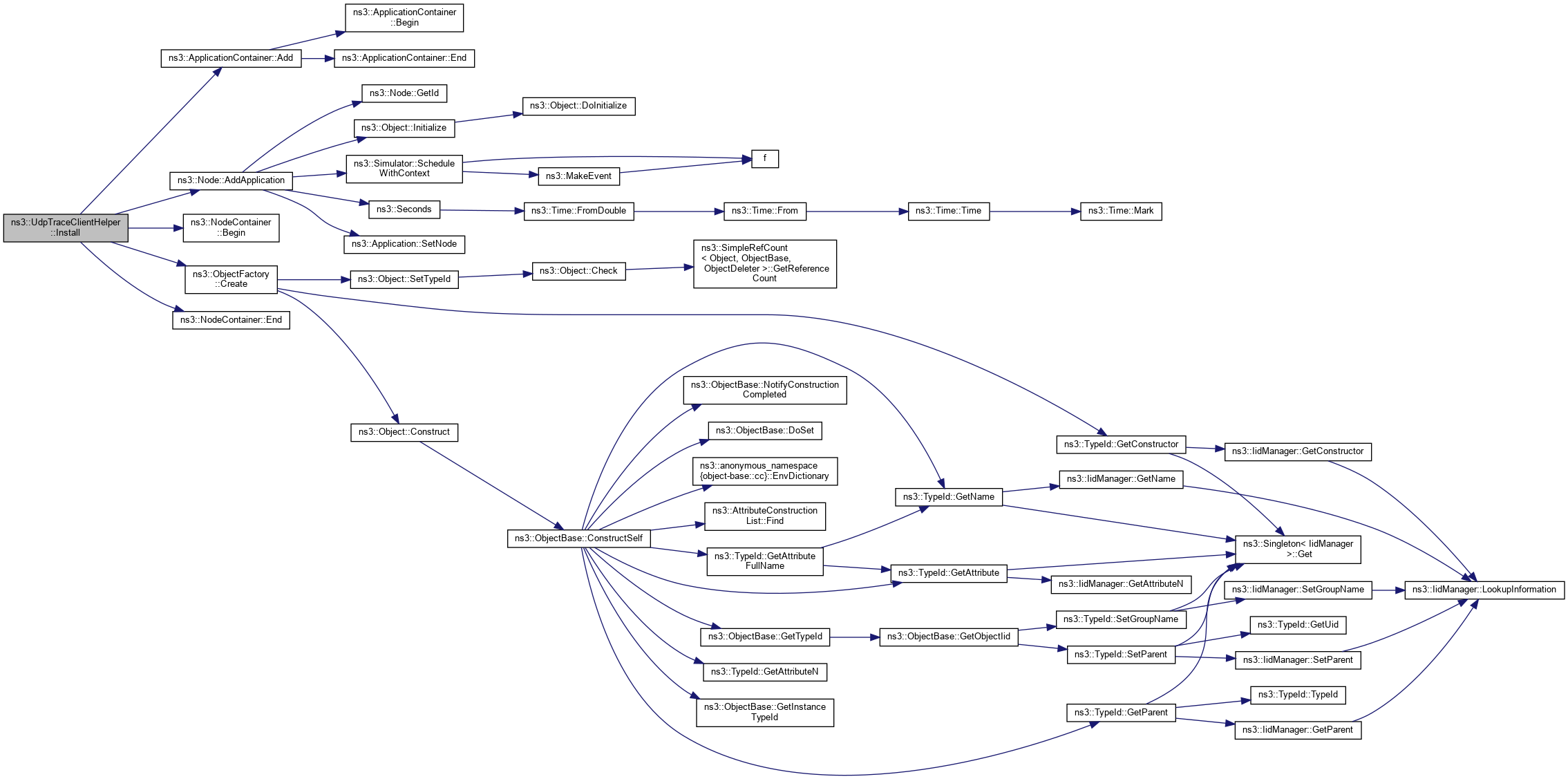 Here is the call graph for this function:| ApplicationContainer ns3::UdpTraceClientHelper::Install | ( | NodeContainer | c | ) |