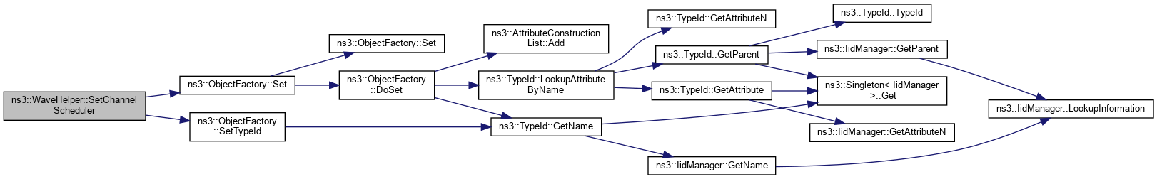 Here is the call graph for this function:| void ns3::WaveHelper::SetChannelScheduler | ( | std::string | type, |
