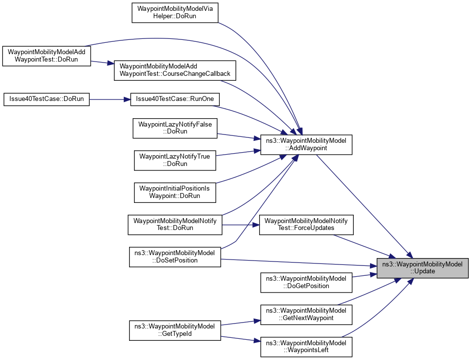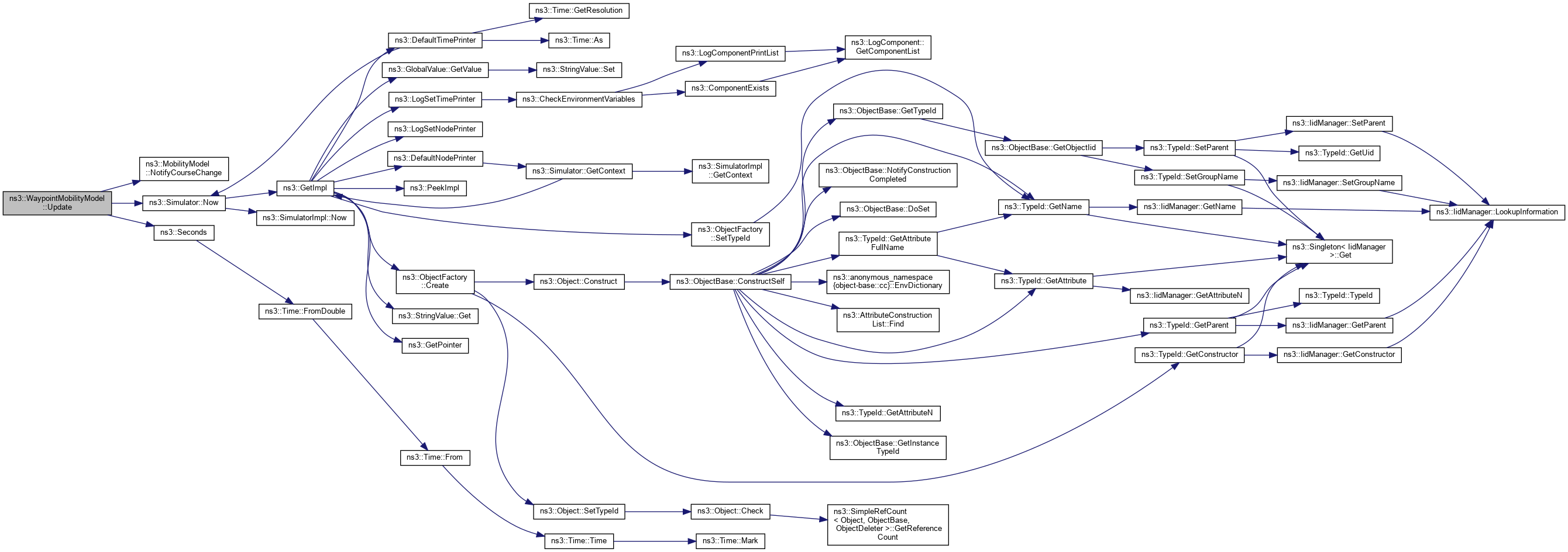 Each object determines its velocity and position at a given time from a set of ns3::Waypoint objects. Past waypoints are discarded after the current simulation time greater than their time value.