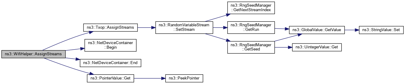 Here is the call graph for this function:| int64_t ns3::WifiHelper::AssignStreams | ( | NetDeviceContainer | c, |