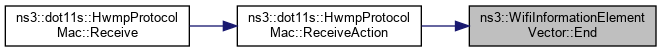 Here is the caller graph for this function:| WifiInformationElementVector::Iterator ns3::WifiInformationElementVector::End | ( | void | ) |