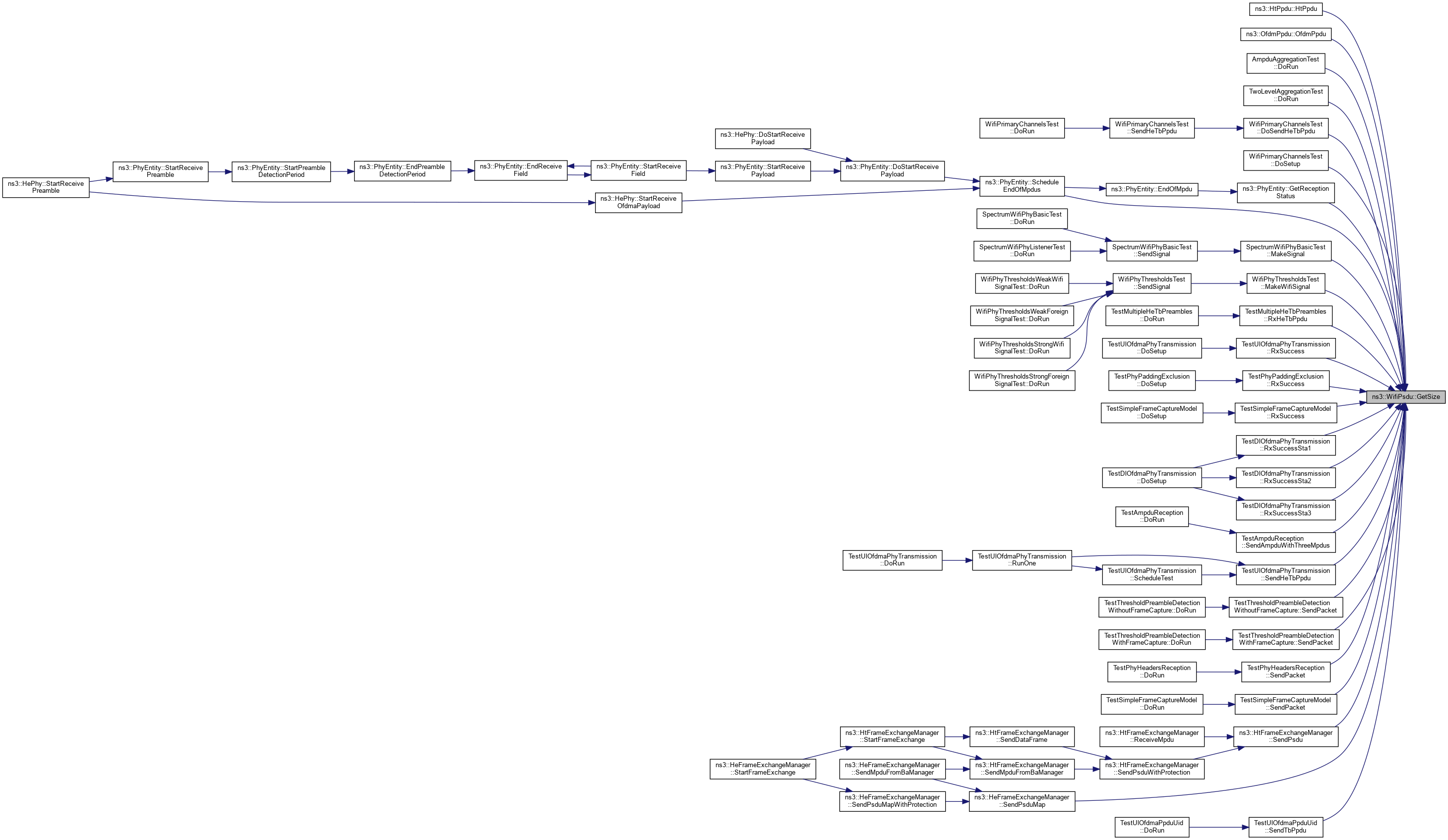Referenced by ns3::HtPpdu::HtPpdu(), ns3::OfdmPpdu::OfdmPpdu(), AmpduAggregationTest::DoRun(), TwoLevelAggregationTest::DoRun(), WifiPrimaryChannelsTest::DoSendHeTbPpdu(), WifiPrimaryChannelsTest::DoSetup(), ns3::PhyEntity::GetReceptionStatus(), SpectrumWifiPhyBasicTest::MakeSignal(), WifiPhyThresholdsTest::MakeWifiSignal(), TestMultipleHeTbPreambles::RxHeTbPpdu(), TestUlOfdmaPhyTransmission::RxSuccess(), TestPhyPaddingExclusion::RxSuccess(), TestSimpleFrameCaptureModel::RxSuccess(), TestDlOfdmaPhyTransmission::RxSuccessSta1(), TestDlOfdmaPhyTransmission::RxSuccessSta2(), TestDlOfdmaPhyTransmission::RxSuccessSta3(), ns3::PhyEntity::ScheduleEndOfMpdus(), TestAmpduReception::SendAmpduWithThreeMpdus(), TestUlOfdmaPhyTransmission::SendHeTbPpdu(), TestThresholdPreambleDetectionWithoutFrameCapture::SendPacket(), TestThresholdPreambleDetectionWithFrameCapture::SendPacket(), TestPhyHeadersReception::SendPacket(), TestSimpleFrameCaptureModel::SendPacket(), ns3::HtFrameExchangeManager::SendPsdu(), ns3::HeFrameExchangeManager::SendPsduMap(), and TestUlOfdmaPpduUid::SendTbPpdu().