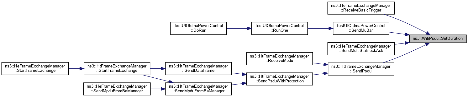 Here is the caller graph for this function:| void ns3::WifiPsdu::SetDuration | ( | Time | duration | ) |