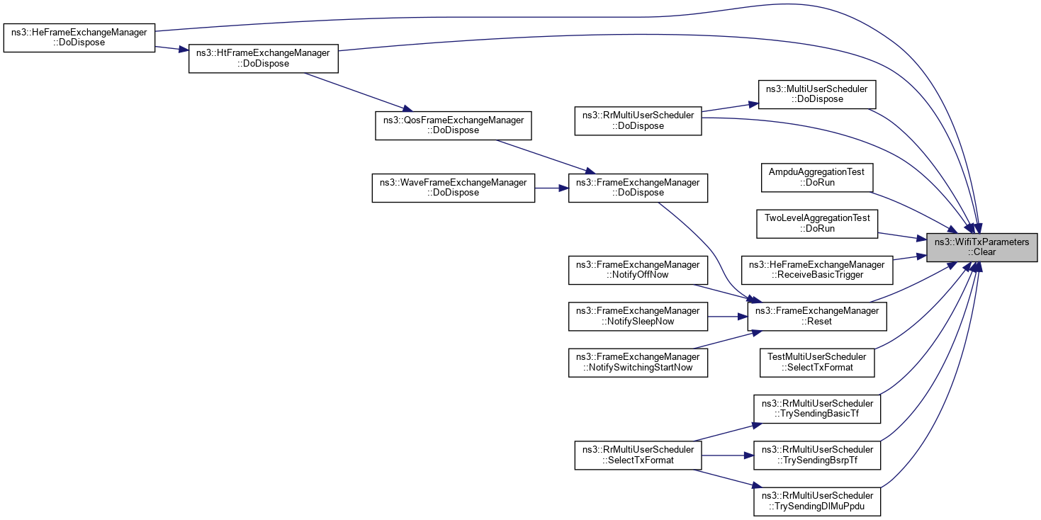 Referenced by ns3::HeFrameExchangeManager::DoDispose(), ns3::HtFrameExchangeManager::DoDispose(), ns3::MultiUserScheduler::DoDispose(), ns3::RrMultiUserScheduler::DoDispose(), AmpduAggregationTest::DoRun(), TwoLevelAggregationTest::DoRun(), ns3::HeFrameExchangeManager::ReceiveBasicTrigger(), ns3::FrameExchangeManager::Reset(), TestMultiUserScheduler::SelectTxFormat(), ns3::RrMultiUserScheduler::TrySendingBasicTf(), ns3::RrMultiUserScheduler::TrySendingBsrpTf(), and ns3::RrMultiUserScheduler::TrySendingDlMuPpdu().
