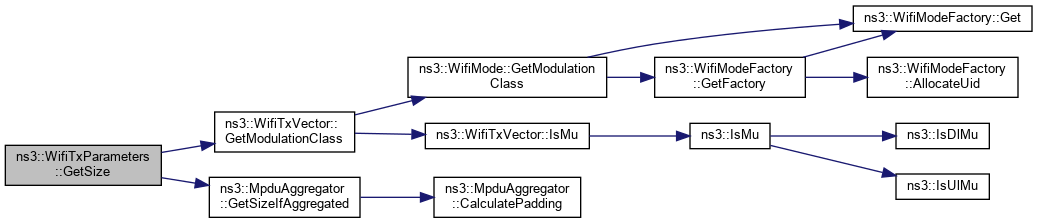 Here is the caller graph for this function:| uint32_t ns3::WifiTxParameters::GetSize | ( | Mac48Address | receiver | ) | const |