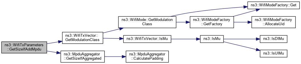 Here is the caller graph for this function:| uint32_t ns3::WifiTxParameters::GetSizeIfAddMpdu | ( | Ptr< const WifiMacQueueItem > | mpdu | ) | const |