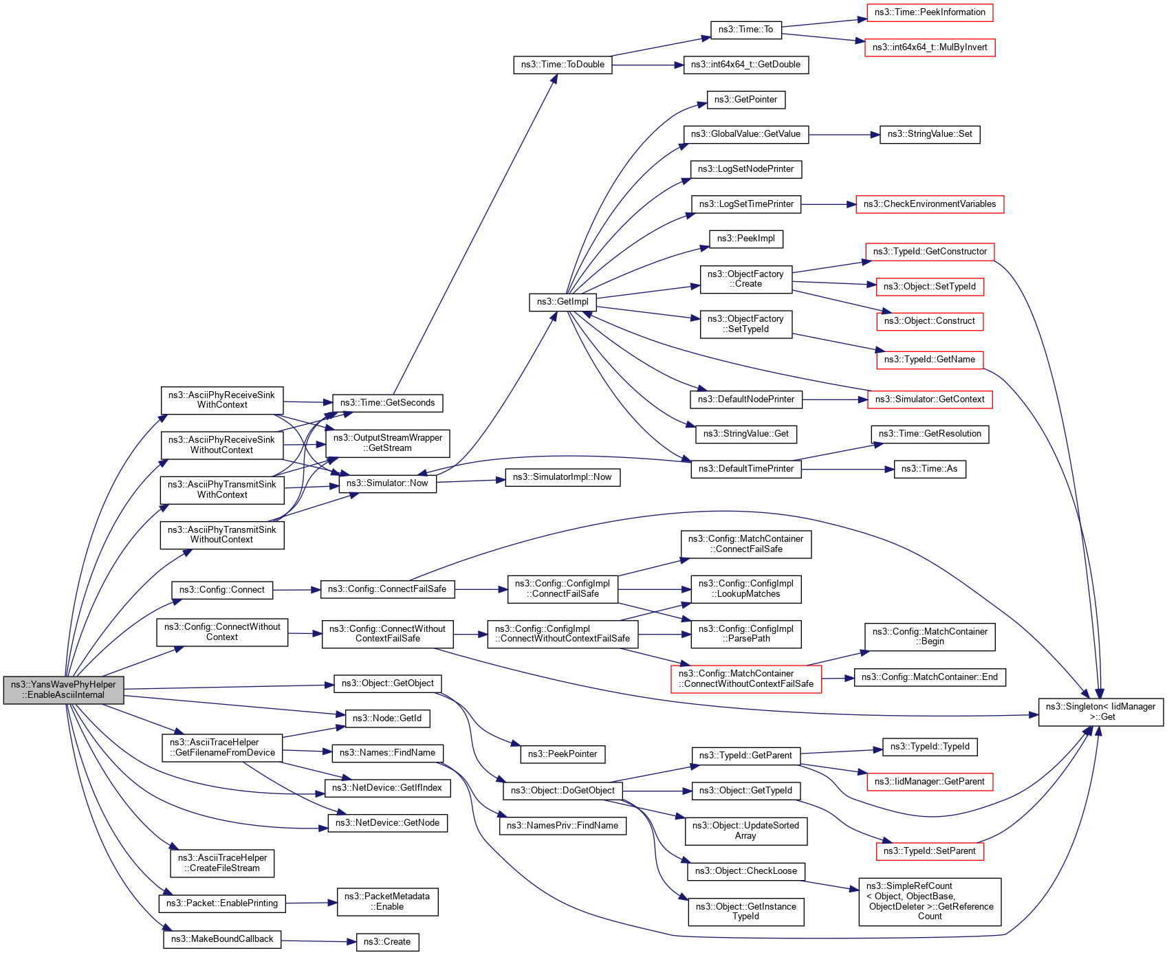 References ns3::AsciiPhyReceiveSinkWithContext(), ns3::AsciiPhyReceiveSinkWithoutContext(), ns3::AsciiPhyTransmitSinkWithContext(), ns3::AsciiPhyTransmitSinkWithoutContext(), ns3::Config::Connect(), ns3::Config::ConnectWithoutContext(), ns3::AsciiTraceHelper::CreateFileStream(), ns3::Packet::EnablePrinting(), ns3::AsciiTraceHelper::GetFilenameFromDevice(), ns3::Node::GetId(), ns3::NetDevice::GetIfIndex(), ns3::NetDevice::GetNode(), ns3::Object::GetObject(), ns3::MakeBoundCallback(), and NS_LOG_INFO.