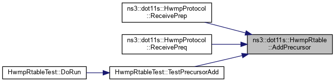 Referenced by ns3::dot11s::HwmpProtocol::ReceivePrep(), ns3::dot11s::HwmpProtocol::ReceivePreq(), and HwmpRtableTest::TestPrecursorAdd().