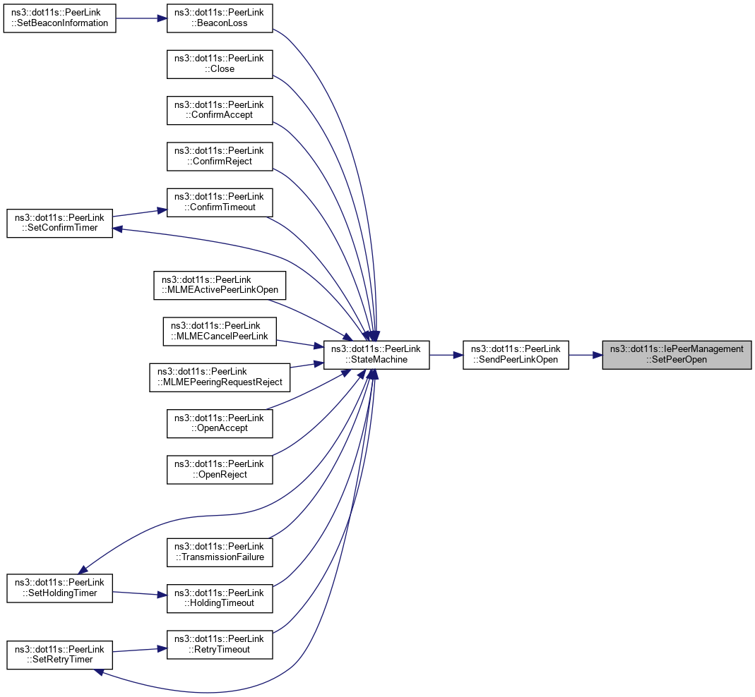Here is the caller graph for this function:| void ns3::dot11s::IePeerManagement::SetPeerOpen | ( | uint16_t | localLinkId | ) |
