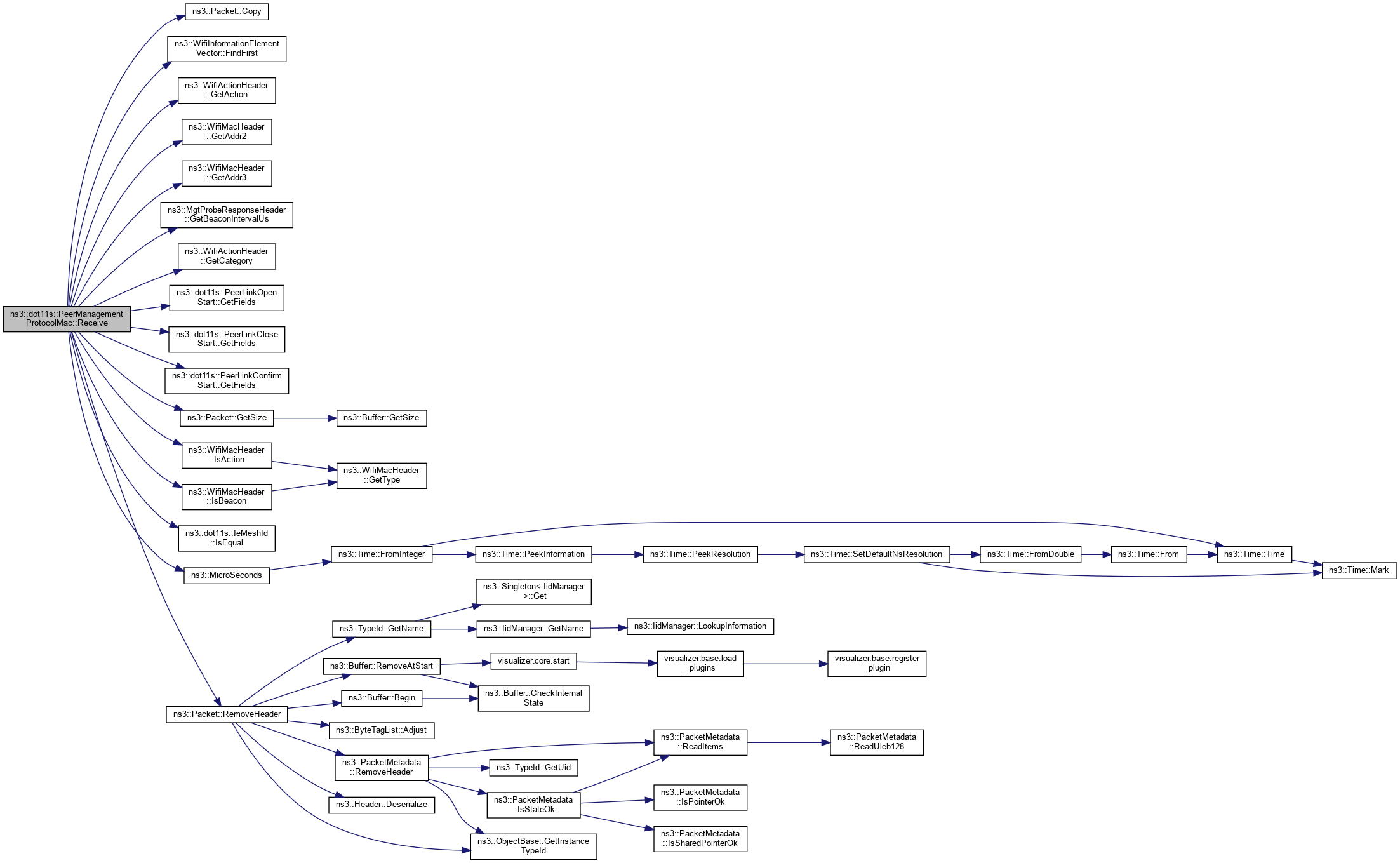 References ns3::dot11s::PeerLinkConfirmStart::PlinkConfirmStartFields::aid, ns3::dot11s::PeerManagementProtocolMac::Statistics::brokenMgt, ns3::dot11s::PeerLinkOpenStart::PlinkOpenStartFields::config, ns3::dot11s::PeerLinkConfirmStart::PlinkConfirmStartFields::config, ns3::Packet::Copy(), ns3::WifiInformationElementVector::FindFirst(), ns3::WifiActionHeader::GetAction(), ns3::WifiMacHeader::GetAddr2(), ns3::WifiMacHeader::GetAddr3(), ns3::MgtProbeResponseHeader::GetBeaconIntervalUs(), ns3::WifiActionHeader::GetCategory(), ns3::dot11s::PeerLinkOpenStart::GetFields(), ns3::dot11s::PeerLinkCloseStart::GetFields(), ns3::dot11s::PeerLinkConfirmStart::GetFields(), ns3::Packet::GetSize(), IE_BEACON_TIMING, IE_MESH_ID, IE_MESH_PEERING_MANAGEMENT, ns3::WifiMacHeader::IsAction(), ns3::WifiMacHeader::IsBeacon(), ns3::dot11s::IeMeshId::IsEqual(), m_ifIndex, m_parent, m_protocol, m_stats, ns3::dot11s::PeerLinkOpenStart::PlinkOpenStartFields::meshId, ns3::dot11s::PeerLinkCloseStart::PlinkCloseStartFields::meshId, ns3::MicroSeconds(), NS_ASSERT, NS_FATAL_ERROR, NS_LOG_DEBUG, NS_LOG_FUNCTION, ns3::WifiActionHeader::PEER_LINK_CLOSE, ns3::WifiActionHeader::PEER_LINK_CONFIRM, ns3::WifiActionHeader::PEER_LINK_OPEN, ns3::dot11s::PeerLinkOpenStart::PlinkOpenStartFields::rates, ns3::dot11s::PeerLinkConfirmStart::PlinkConfirmStartFields::rates, ns3::Packet::RemoveHeader(), ns3::dot11s::PeerManagementProtocolMac::Statistics::rxClose, ns3::dot11s::PeerManagementProtocolMac::Statistics::rxConfirm, ns3::dot11s::PeerManagementProtocolMac::Statistics::rxMgt, ns3::dot11s::PeerManagementProtocolMac::Statistics::rxMgtBytes, ns3::dot11s::PeerManagementProtocolMac::Statistics::rxOpen, ns3::WifiActionHeader::SELF_PROTECTED, and ns3::WifiActionHeader::ActionValue::selfProtectedAction.