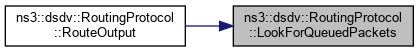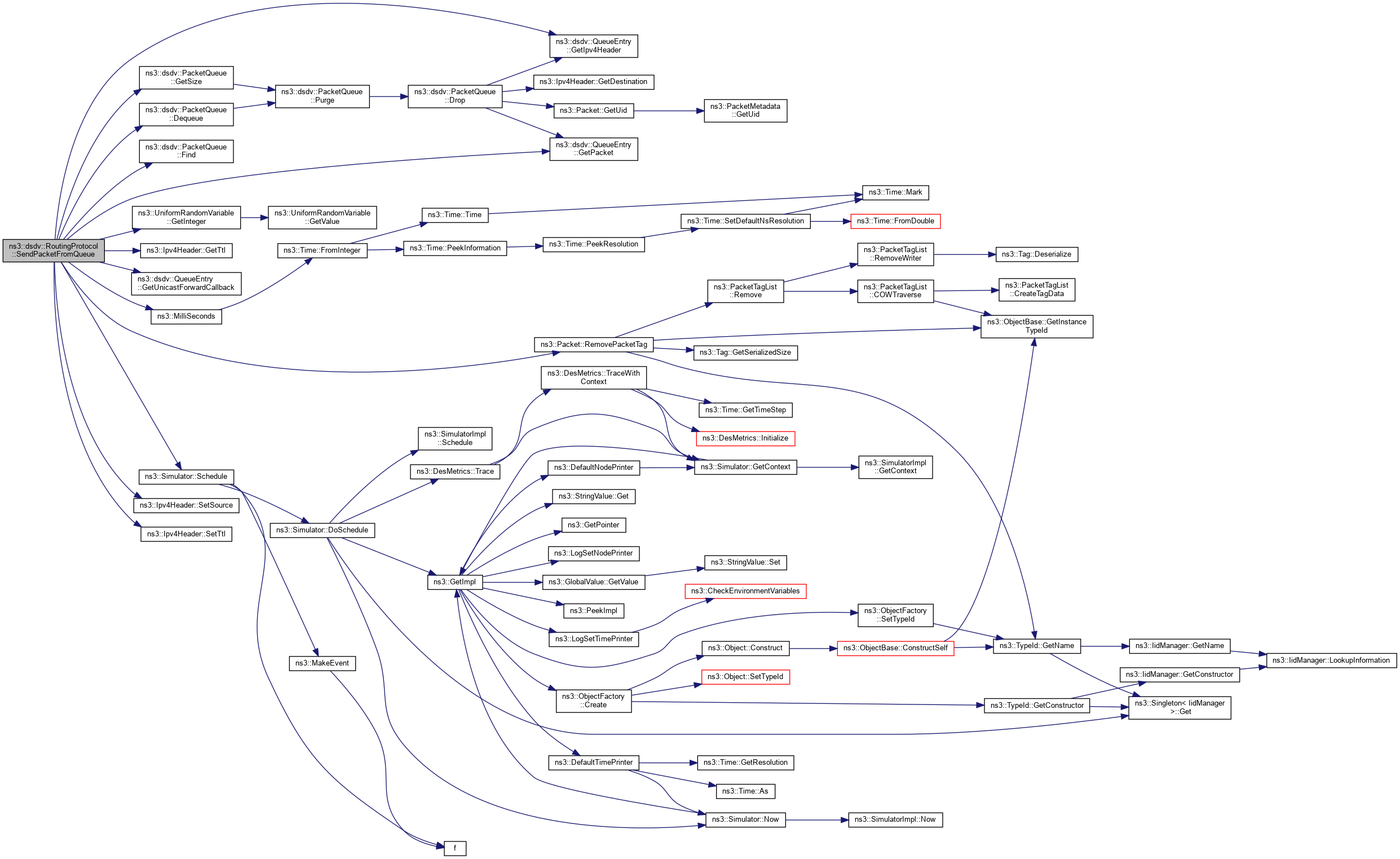 References ns3::dsdv::PacketQueue::Dequeue(), ns3::dsdv::PacketQueue::Find(), ns3::UniformRandomVariable::GetInteger(), ns3::dsdv::QueueEntry::GetIpv4Header(), ns3::dsdv::QueueEntry::GetPacket(), ns3::dsdv::PacketQueue::GetSize(), ns3::Ipv4Header::GetTtl(), ns3::dsdv::QueueEntry::GetUnicastForwardCallback(), m_ipv4, m_mainAddress, m_queue, m_uniformRandomVariable, ns3::MilliSeconds(), NS_LOG_DEBUG, ns3::dsdv::DeferredRouteOutputTag::oif, ns3::Packet::RemovePacketTag(), ns3::Simulator::Schedule(), ns3::Ipv4Header::SetSource(), and ns3::Ipv4Header::SetTtl().
