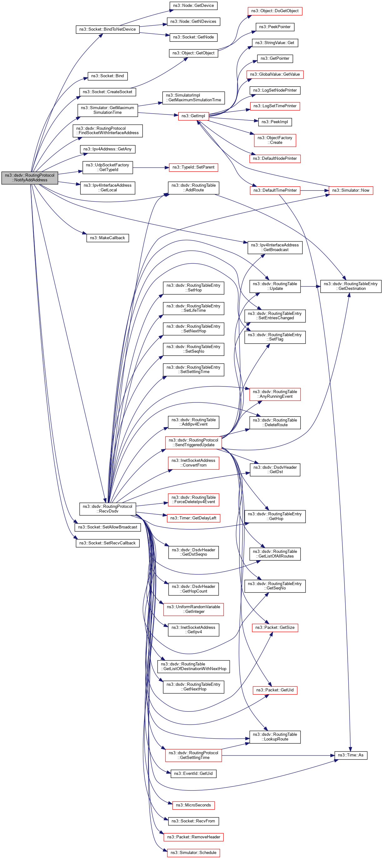 References ns3::Packet::AddHeader(), ns3::dsdv::RoutingTable::AnyRunningEvent(), ns3::dsdv::RoutingTable::DeleteIpv4Event(), ns3::dsdv::RoutingTable::DeleteRoute(), DSDV_PORT, ns3::Ipv4InterfaceAddress::GetBroadcast(), ns3::dsdv::RoutingTableEntry::GetDestination(), ns3::dsdv::DsdvHeader::GetDst(), ns3::dsdv::RoutingTable::GetEventId(), ns3::dsdv::RoutingTableEntry::GetHop(), ns3::dsdv::RoutingTable::GetListOfAllRoutes(), ns3::Ipv4InterfaceAddress::GetMask(), ns3::Ipv4Mask::GetOnes(), ns3::dsdv::RoutingTableEntry::GetSeqNo(), ns3::Packet::GetSize(), ns3::Packet::GetUid(), ns3::dsdv::RoutingTable::LookupRoute(), m_advRoutingTable, m_ipv4, m_mainAddress, m_routingTable, m_socketAddresses, NS_ASSERT, NS_LOG_DEBUG, NS_LOG_FUNCTION, NS_LOG_LOGIC, ns3::Socket::SendTo(), ns3::dsdv::DsdvHeader::SetDst(), ns3::dsdv::DsdvHeader::SetDstSeqno(), ns3::dsdv::RoutingTableEntry::SetEntriesChanged(), ns3::dsdv::RoutingTableEntry::SetFlag(), ns3::dsdv::DsdvHeader::SetHopCount(), ns3::dsdv::RoutingTable::Update(), and ns3::dsdv::VALID.