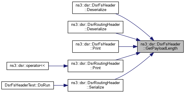 Here is the caller graph for this function:| uint16_t ns3::dsr::DsrFsHeader::GetPayloadLength | ( | ) | const |