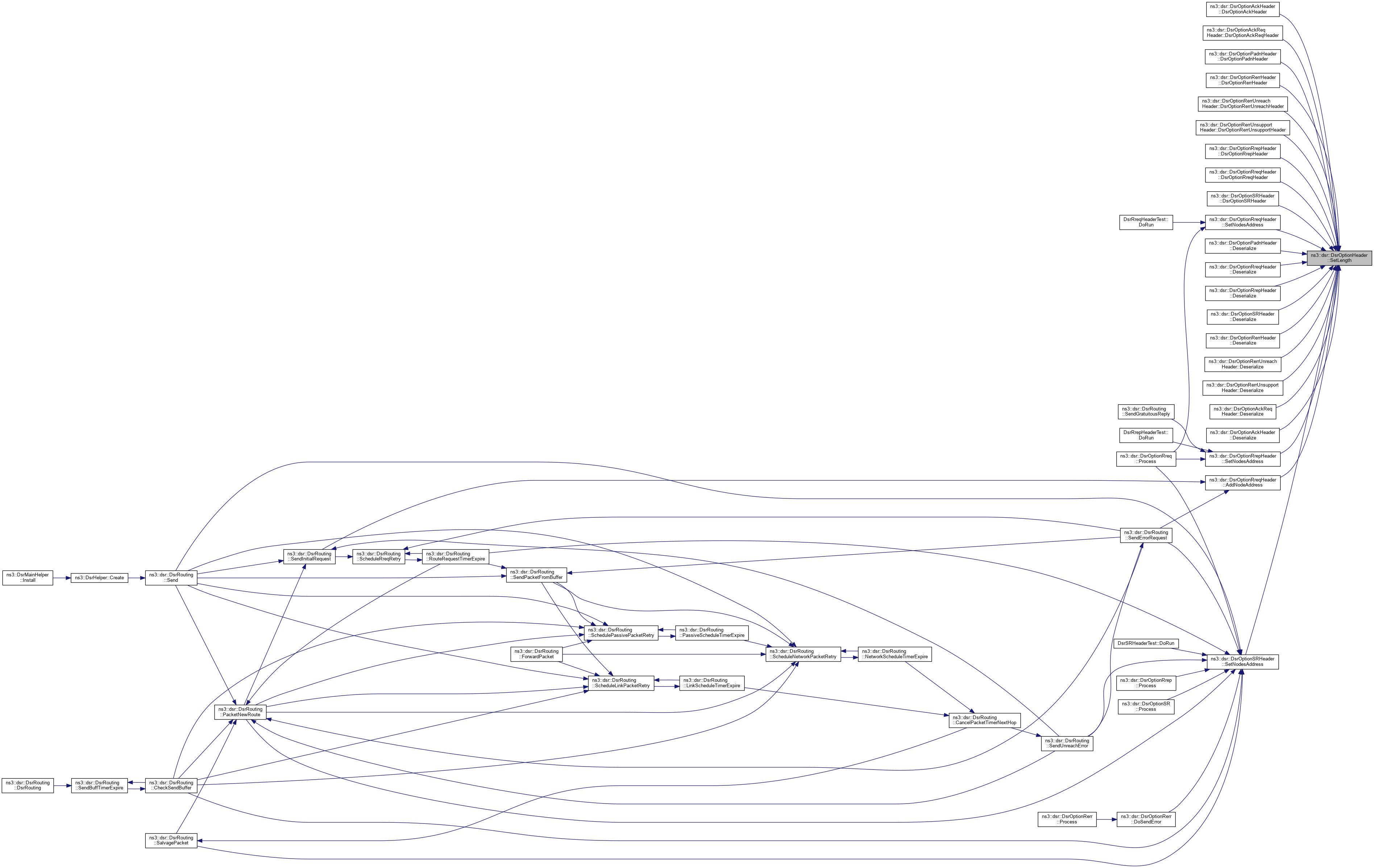 Here is the call graph for this function:| uint8_t ns3::dsr::DsrOptionHeader::GetLength | ( | void | ) | const |