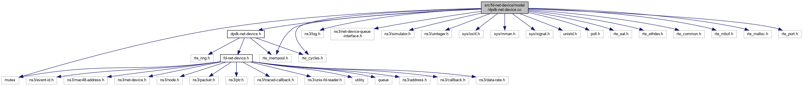 Include dependency graph for dpdk-net-device.cc:Go to the source code of this file.