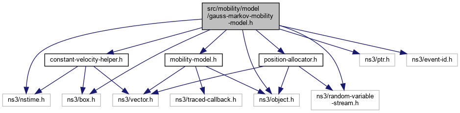+ Include dependency graph for gauss-markov-mobility-model.h: