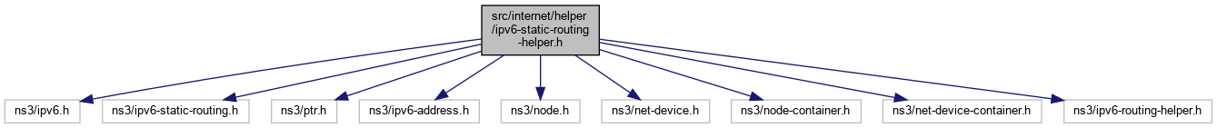 #include "ns3/ipv6.h"#include "ns3/ipv6-static-routing.h"#include "ns3/ptr.h"#include "ns3/ipv6-address.h"#include "ns3/node.h"#include "ns3/net-device.h"#include "ns3/node-container.h"#include "ns3/net-device-container.h"#include "ns3/ipv6-routing-helper.h"