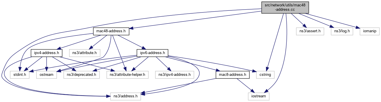 Include dependency graph for mac48-address.cc:Go to the source code of this file.