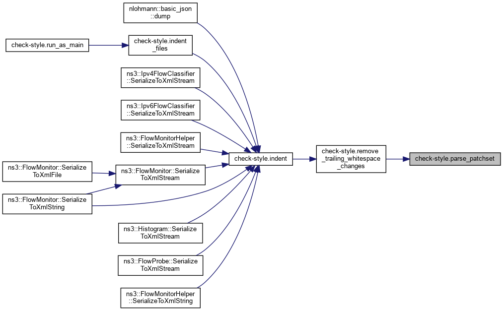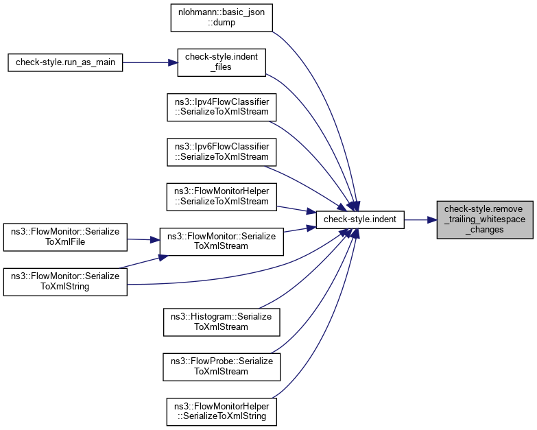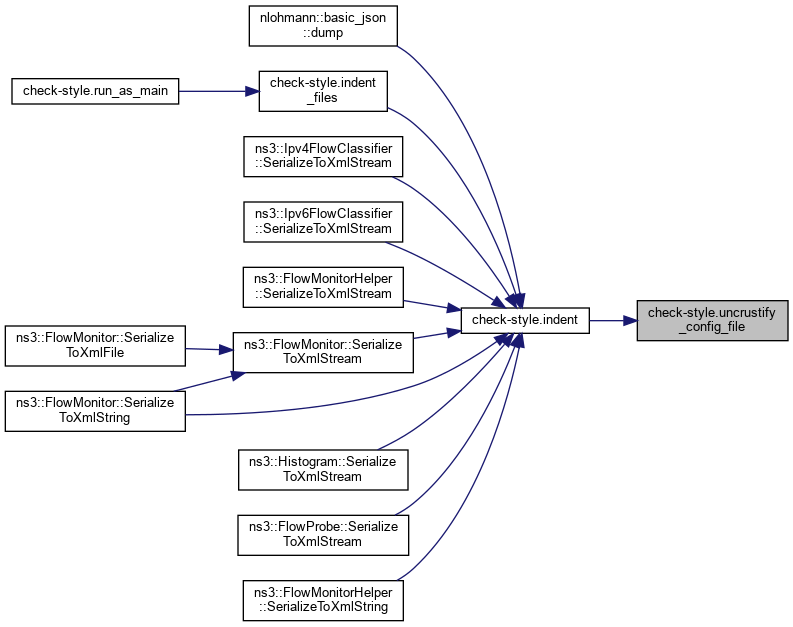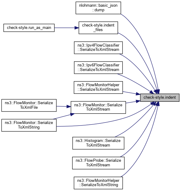 Referenced by nlohmann::basic_json< ObjectType, ArrayType, StringType, BooleanType, NumberIntegerType, NumberUnsignedType, NumberFloatType, AllocatorType, JSONSerializer, BinaryType >.dump(), indent_files(), ns3::Ipv4FlowClassifier.SerializeToXmlStream(), ns3::Ipv6FlowClassifier.SerializeToXmlStream(), ns3::FlowMonitorHelper.SerializeToXmlStream(), ns3::FlowMonitor.SerializeToXmlStream(), ns3::Histogram.SerializeToXmlStream(), ns3::FlowProbe.SerializeToXmlStream(), ns3::FlowMonitorHelper.SerializeToXmlString(), and ns3::FlowMonitor.SerializeToXmlString().