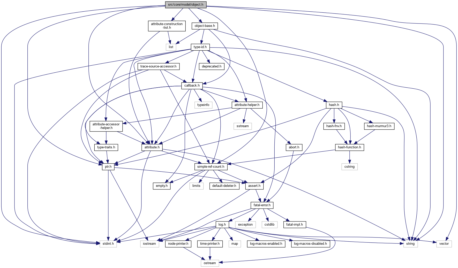 #include <stdint.h>#include <string>#include <vector>#include "ptr.h"#include "attribute.h"#include "object-base.h"#include "attribute-construction-list.h"#include "simple-ref-count.h"