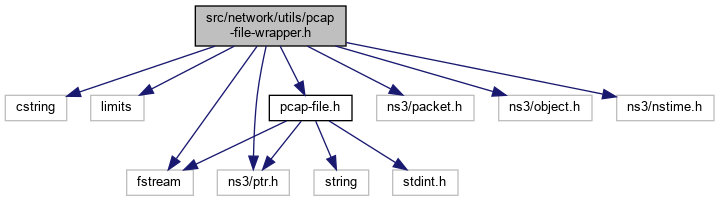 #include <cstring>#include <limits>#include <fstream>#include "ns3/ptr.h"#include "ns3/packet.h"#include "ns3/object.h"#include "ns3/nstime.h"#include "pcap-file.h"