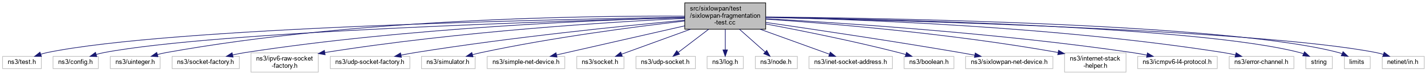 Include dependency graph for sixlowpan-fragmentation-test.cc:Go to the source code of this file.