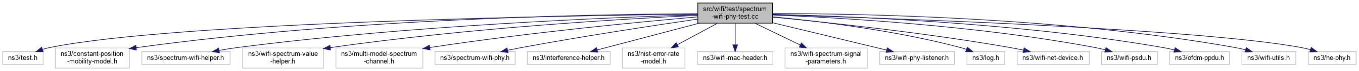 Include dependency graph for spectrum-wifi-phy-test.cc:Go to the source code of this file.
