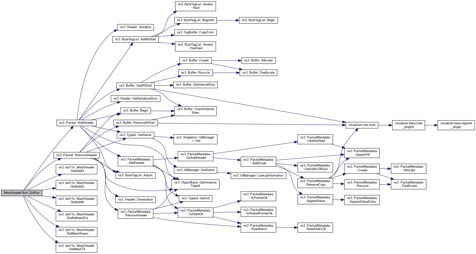 References ns3::Packet::AddHeader(), NS_TEST_ASSERT_MSG_EQ, ns3::Packet::RemoveHeader(), ns3::dot11s::MeshHeader::SetAddr4(), ns3::dot11s::MeshHeader::SetAddr5(), ns3::dot11s::MeshHeader::SetAddr6(), ns3::dot11s::MeshHeader::SetAddressExt(), ns3::dot11s::MeshHeader::SetMeshSeqno(), and ns3::dot11s::MeshHeader::SetMeshTtl().