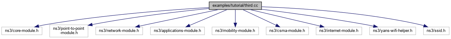 #include "ns3/core-module.h"#include "ns3/point-to-point-module.h"#include "ns3/network-module.h"#include "ns3/applications-module.h"#include "ns3/mobility-module.h"#include "ns3/csma-module.h"#include "ns3/internet-module.h"#include "ns3/yans-wifi-helper.h"#include "ns3/ssid.h"