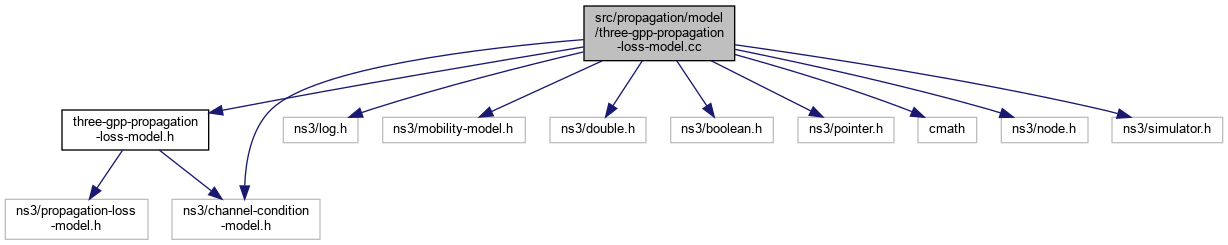 Include dependency graph for three-gpp-propagation-loss-model.cc:Go to the source code of this file.