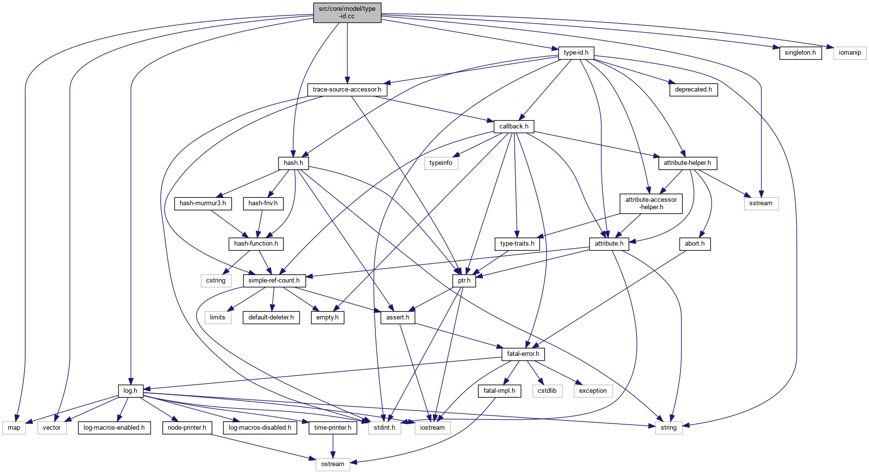 #include "log.h"#include "hash.h"#include "type-id.h"#include "singleton.h"#include "trace-source-accessor.h"#include <map>#include <vector>#include <sstream>#include <iomanip>