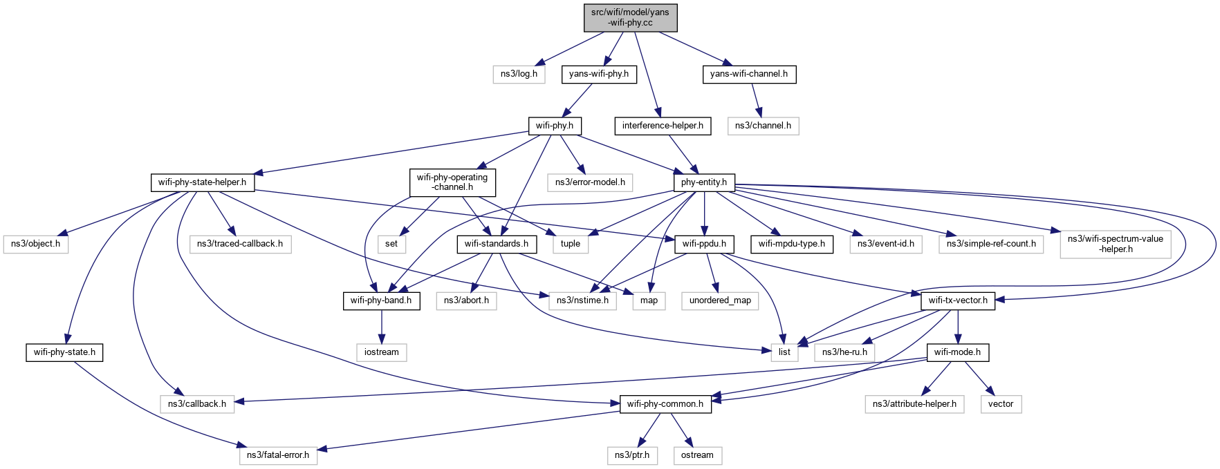 Include dependency graph for yans-wifi-phy.cc:Go to the source code of this file.