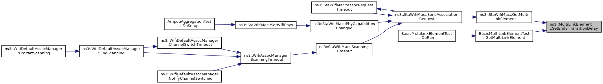 Here is the caller graph for this function:| void ns3::MultiLinkElement::SetEmlsrTransitionDelay | ( | Time | delay | ) |