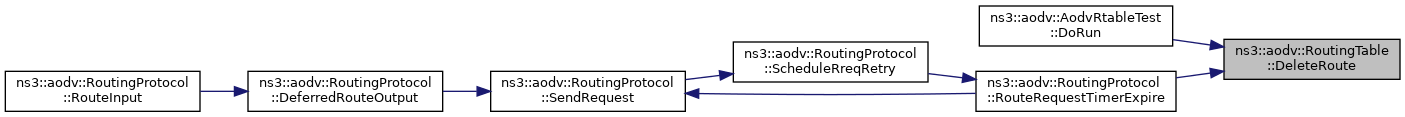 Here is the caller graph for this function:| bool ns3::aodv::RoutingTable::DeleteRoute | ( | Ipv4Address | dst | ) |