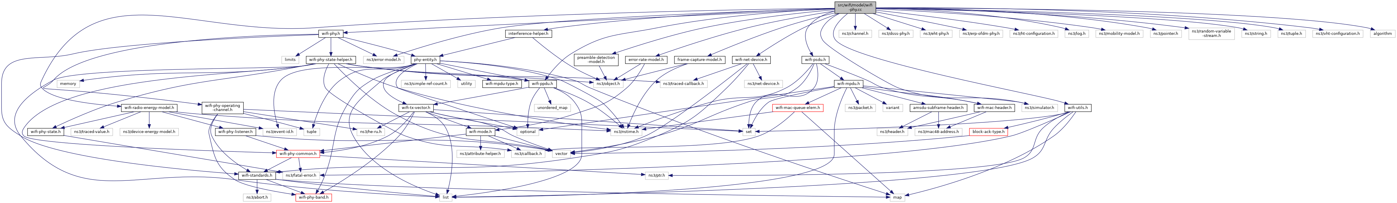 Include dependency graph for wifi-phy.cc:Go to the source code of this file.