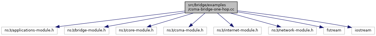 Include dependency graph for csma-bridge-one-hop.cc:Go to the source code of this file.