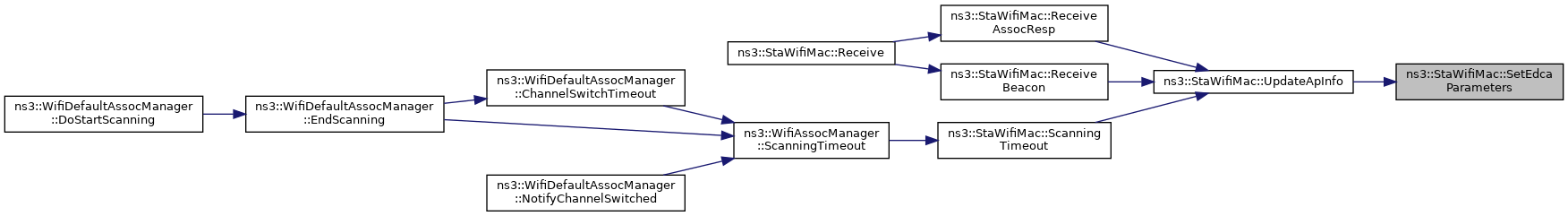 References ns3::AC_BE, ns3::AC_BK, ns3::AC_VI, ns3::AC_VO, ns3::WifiMac::GetEhtSupported(), ns3::WifiMac::GetErpSupported(), ns3::WifiMac::GetHeConfiguration(), ns3::WifiMac::GetHeSupported(), ns3::WifiMac::GetHtSupported(), ns3::WifiMac::GetQosSupported(), ns3::WifiMac::GetVhtSupported(), ns3::WifiMac::GetWifiPhy(), ns3::WifiMac::GetWifiRemoteStationManager(), m_emlsrManager, ns3::MicroSeconds(), NS_ASSERT, NS_LOG_FUNCTION, SetEdcaParameters(), SetMuEdcaParameters(), ns3::WifiPhy::SetSlot(), ns3::WIFI_MOD_CLASS_HE, and ns3::WIFI_MOD_CLASS_VHT.