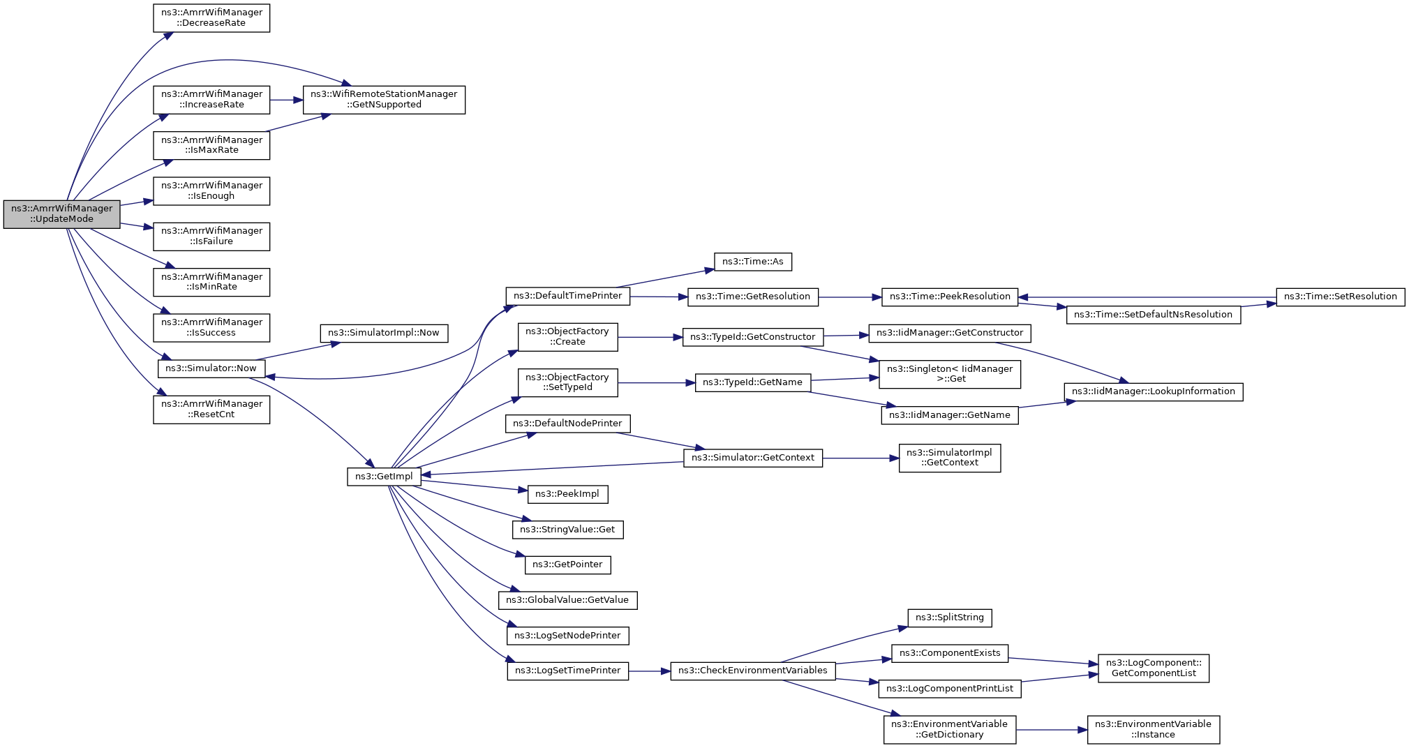 References DecreaseRate(), ns3::WifiRemoteStationManager::GetNSupported(), IncreaseRate(), IsEnough(), IsFailure(), IsMaxRate(), IsMinRate(), IsSuccess(), m_maxSuccessThreshold, m_minSuccessThreshold, ns3::AmrrWifiRemoteStation::m_nextModeUpdate, ns3::AmrrWifiRemoteStation::m_recovery, ns3::AmrrWifiRemoteStation::m_success, ns3::AmrrWifiRemoteStation::m_successThreshold, ns3::AmrrWifiRemoteStation::m_tx_err, ns3::AmrrWifiRemoteStation::m_tx_ok, ns3::AmrrWifiRemoteStation::m_tx_retr, ns3::AmrrWifiRemoteStation::m_txrate, m_updatePeriod, min, ns3::Simulator::Now(), NS_LOG_DEBUG, NS_LOG_FUNCTION, and ResetCnt().