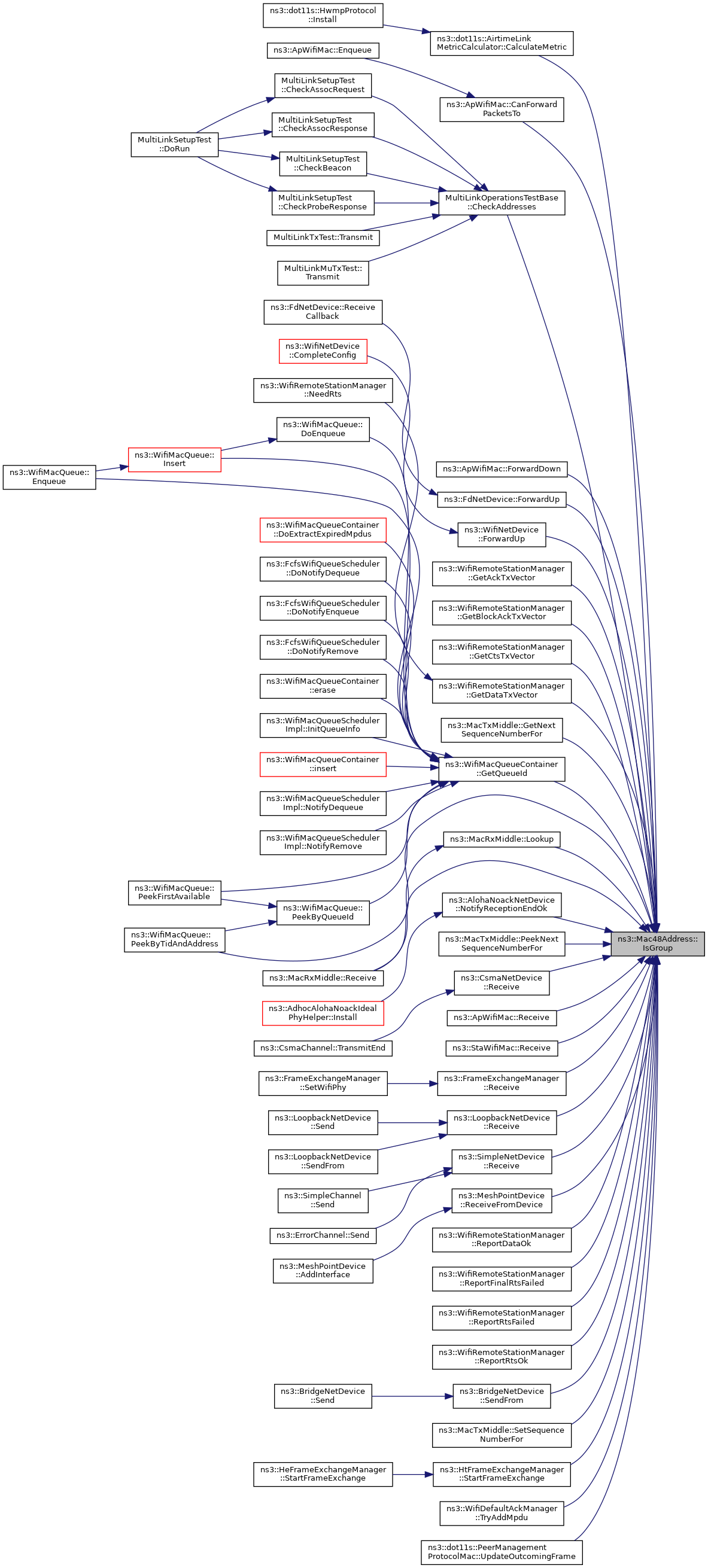 Referenced by ns3::NoBackhaulEpcHelper::AddEnb(), ns3::StaWifiMac::BlockTxOnLink(), ns3::dot11s::PeerLink::ConfirmAccept(), ns3::dot11s::PeerLink::ConfirmReject(), ns3::MeshWifiBeacon::CreateHeader(), ns3::dot11s::HwmpRtable::DeleteProactivePath(), ns3::dot11s::HwmpProtocolMac::ForwardPerr(), ns3::dot11s::HwmpProtocol::ForwardUnicast(), ns3::LteNetDevice::GetBroadcast(), ns3::MockNetDevice::GetBroadcast(), ns3::WifiNetDevice::GetBroadcast(), ns3::WimaxNetDevice::GetBroadcast(), ns3::dot11s::HwmpProtocol::GetBroadcastReceivers(), ns3::dot11s::HwmpProtocol::GetPreqReceivers(), ns3::MultiUserScheduler::GetTriggerFrame(), ns3::flame::FlameProtocol::HandleDataFrame(), IsBroadcast(), ns3::dot11s::HwmpRtable::LookupResult::IsValid(), ns3::flame::FlameRtable::LookupResult::IsValid(), ns3::dot11s::IePreq::MayAddAddress(), ns3::dot11s::PeerLink::OpenAccept(), ns3::dot11s::PeerLink::OpenReject(), ns3::dot11s::HwmpProtocol::ProactivePathResolved(), ns3::dot11s::HwmpProtocol::ReactivePathResolved(), ns3::MeshWifiInterfaceMac::Receive(), ns3::flame::FlameProtocolMac::Receive(), ns3::dot11s::PeerManagementProtocol::ReceiveBeacon(), ns3::dot11s::HwmpProtocolMac::ReceiveData(), ns3::dot11s::HwmpProtocol::ReceivePrep(), ns3::dot11s::HwmpProtocol::ReceivePreq(), ns3::flame::FlameProtocol::RemoveRoutingStuff(), ns3::dot11s::HwmpProtocol::RequestRoute(), ns3::flame::FlameProtocol::RequestRoute(), ns3::dot11s::HwmpProtocol::RetryPathDiscovery(), ns3::QosFrameExchangeManager::SendCfEndIfNeeded(), ns3::MeshWifiInterfaceMac::SendManagementFrame(), ns3::HeFrameExchangeManager::SendMuRts(), ns3::ApWifiMac::SendOneBeacon(), ns3::dot11s::HwmpProtocol::SendProactivePreq(), ns3::StaWifiMac::SendProbeRequest(), ns3::dot11s::PeerLink::StateMachine(), ns3::StaWifiMac::UnblockTxOnLink(), and ns3::flame::FlameProtocolMac::UpdateOutcomingFrame().