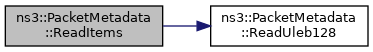 | uint32_t | ReadItems (uint16_t current, PacketMetadata::SmallItem *item, PacketMetadata::ExtraItem *extraItem) const |