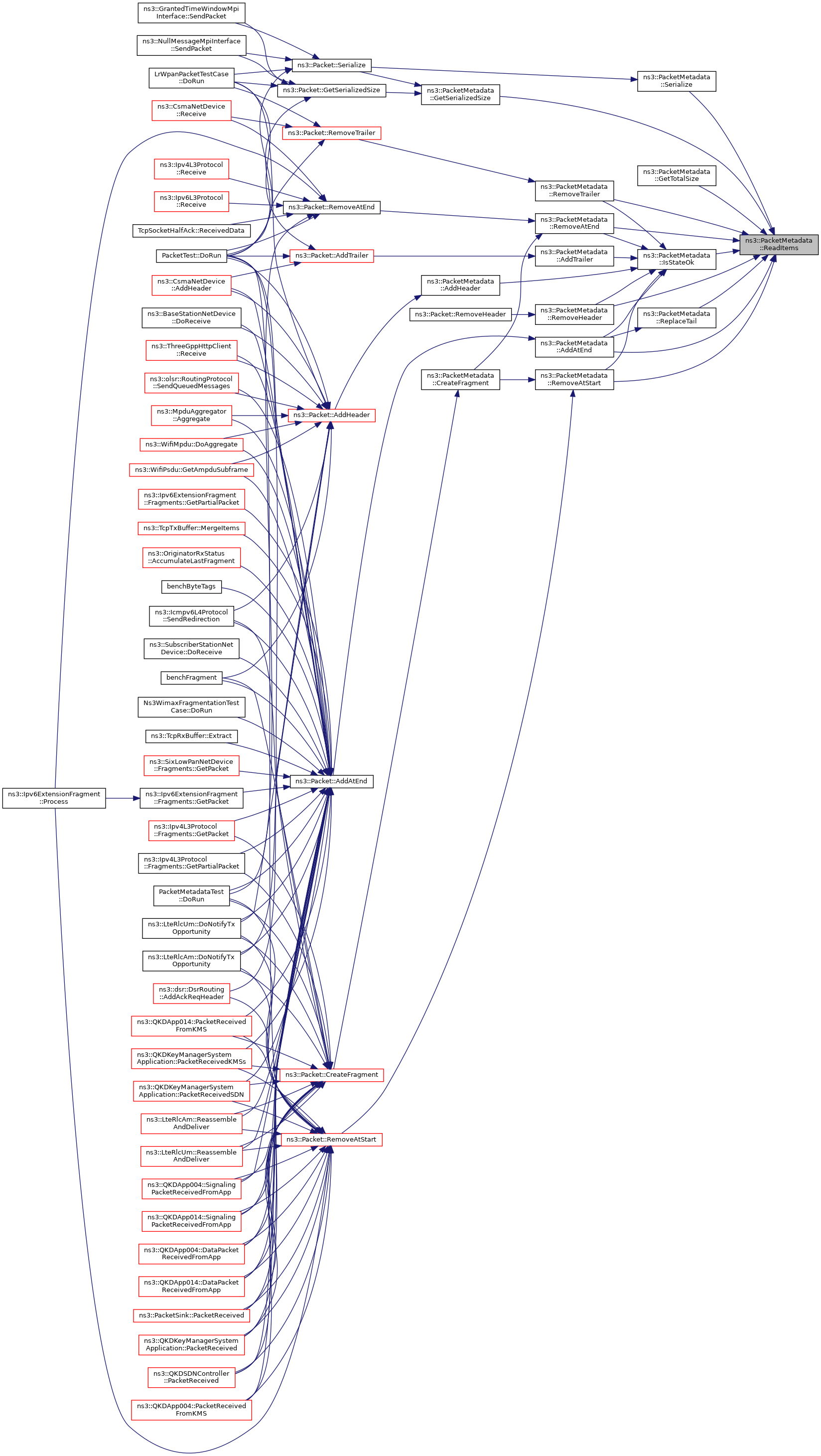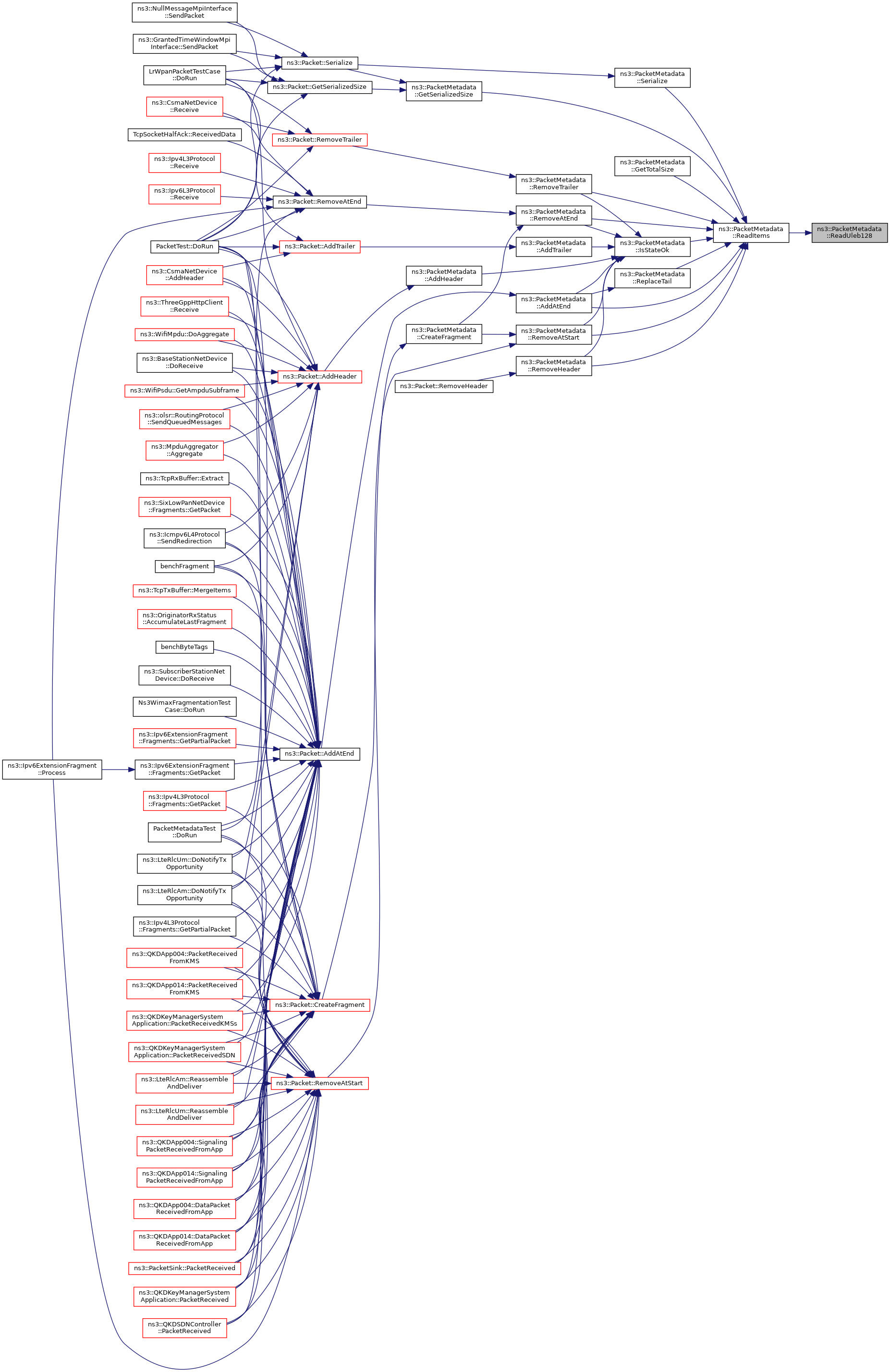 References AddToRaw(), AddToRawU16(), AddToRawU32(), AddToRawU64(), AddToRawU8(), ns3::PacketMetadata::SmallItem::chunkUid, ns3::PacketMetadata::ExtraItem::fragmentEnd, ns3::PacketMetadata::ExtraItem::fragmentStart, ns3::TypeId::GetName(), m_head, m_packetUid, m_tail, ns3::PacketMetadata::SmallItem::next, NS_ASSERT, NS_LOG_FUNCTION, NS_LOG_LOGIC, ns3::PacketMetadata::ExtraItem::packetUid, ReadItems(), ns3::TypeId::SetUid(), ns3::PacketMetadata::SmallItem::size, two-ray-to-three-gpp-ch-calibration::start, and ns3::PacketMetadata::SmallItem::typeUid.