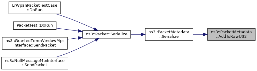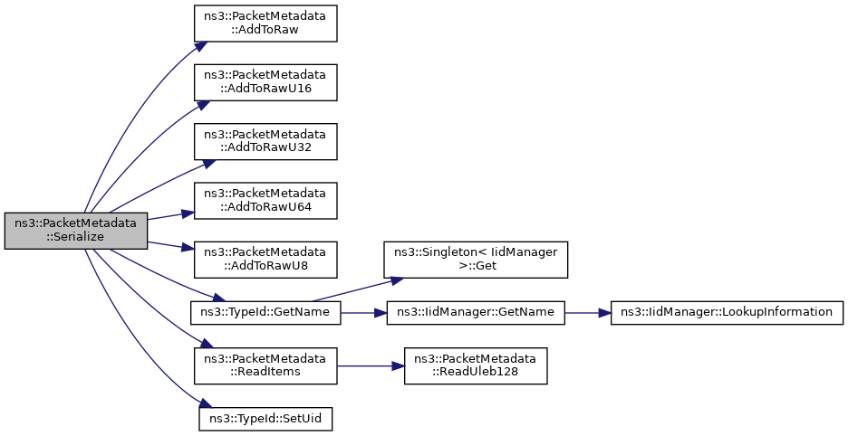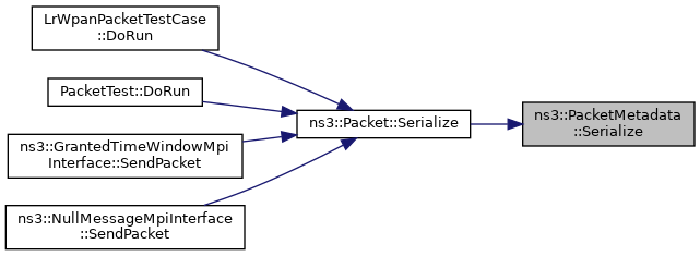 Here is the caller graph for this function:| uint32_t ns3::PacketMetadata::Serialize | ( | uint8_t * | buffer, |