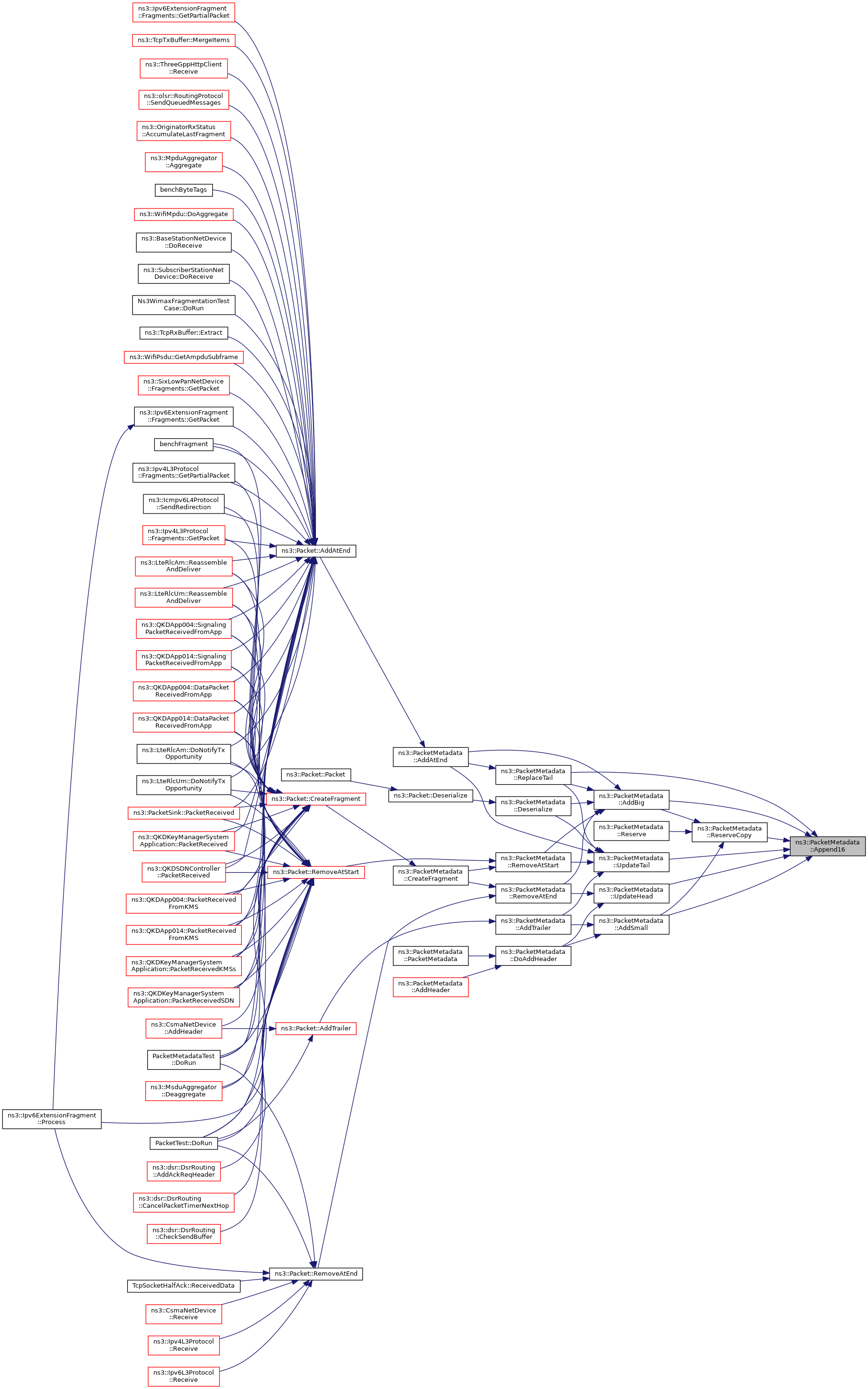 References AddBig(), Append16(), Append32(), AppendValue(), ns3::PacketMetadata::SmallItem::chunkUid, ns3::PacketMetadata::ExtraItem::fragmentEnd, ns3::PacketMetadata::ExtraItem::fragmentStart, GetUleb128Size(), ns3::PacketMetadata::Data::m_count, ns3::PacketMetadata::Data::m_data, m_data, ns3::PacketMetadata::Data::m_dirtyEnd, m_head, m_packetUid, ns3::PacketMetadata::Data::m_size, m_tail, m_used, max, ns3::PacketMetadata::SmallItem::next, NS_ASSERT, NS_LOG_FUNCTION, ns3::PacketMetadata::ExtraItem::packetUid, ns3::PacketMetadata::SmallItem::prev, ReadItems(), ns3::PacketMetadata::SmallItem::size, ns3::PacketMetadata::SmallItem::typeUid, and UpdateTail().