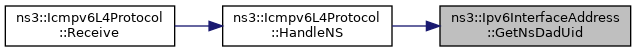 Here is the caller graph for this function:| uint32_t ns3::Ipv6InterfaceAddress::GetNsDadUid | ( | ) | const |
