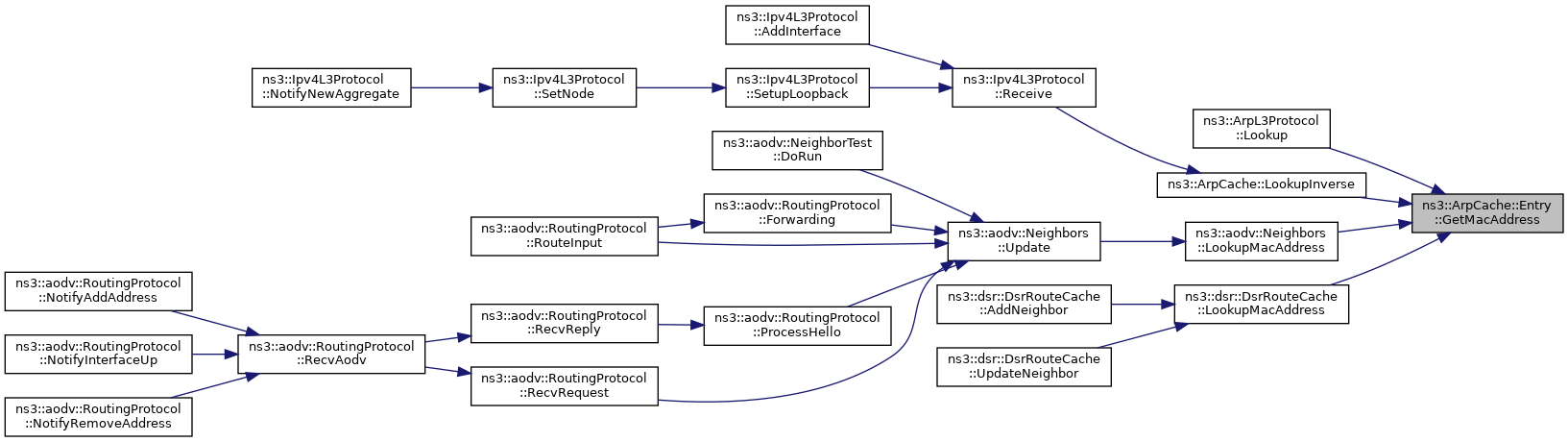 Referenced by ns3::ArpL3Protocol::Lookup(), ns3::aodv::Neighbors::LookupMacAddress(), and ns3::dsr::DsrRouteCache::LookupMacAddress().